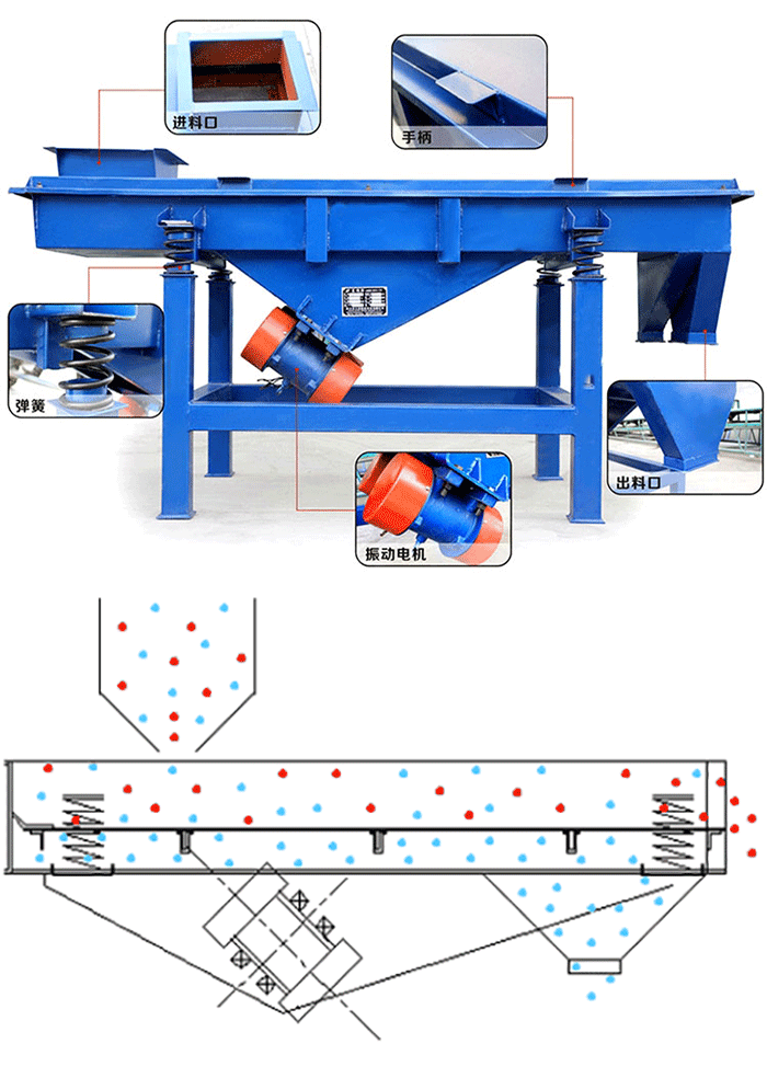 直線振動篩是雙振動電機驅(qū)動,當(dāng)兩臺振動電機做同步、反向旋轉(zhuǎn)時使用振動篩需要注意哪些細(xì)節(jié)呢?看這兒,其偏心塊所產(chǎn)生的激振力在平行于電機軸線的方向相互抵消,在垂直于電機軸的方向疊為一合力,因此直線篩的運行軌跡為一直線。兩電機軸相對篩面有一傾角,在激振力和物料自重力的合力作用下,物料在篩面上被拋起跳躍式向前作直線運動,從而達到對物料進行篩選和分級的目的。