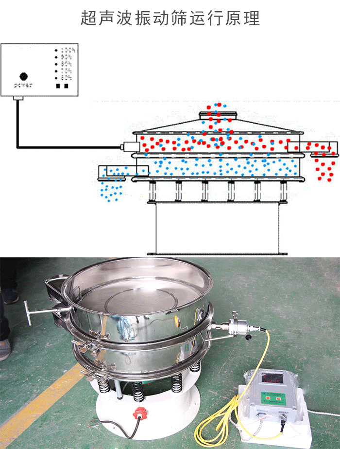 超聲波振動篩是將220v、50HZ或110v、60HZ電能轉(zhuǎn)化為38KHZ的高頻電能,輸入超聲換能器,將其變成38KHZ機(jī)械振動,從而達(dá)到高效篩分和清網(wǎng)的目的。超微細(xì)粉體接受巨大的超聲加速度,使篩面上的物料始終保持懸浮狀態(tài),從而抑制粘附、摩擦、平降、等堵網(wǎng)因素。解決了強(qiáng)吸附性、易團(tuán)聚、高靜電、高精細(xì)、高密度、輕比重等篩分難題,使超細(xì)微粉篩分不再難事,特別適合高品質(zhì)、精細(xì)粉體的用戶使用 高頻振動篩采用筒體式偏心軸激振器及偏塊調(diào)節(jié)振幅,物料篩淌線長,篩分規(guī)格多,具有結(jié)構(gòu)可靠、激振力強(qiáng)、篩分效率高、振動噪音小、堅(jiān)固耐用、維修方便、使用安全等特點(diǎn)。由于高頻振動篩采用了高頻率,一方面破壞了礦漿表面的張力和細(xì)粒物料在篩面上的高速振蕩,加速了大密度有用礦物和析離作用,增加了小于分離粒度物料與篩孔接觸的概率。