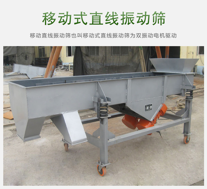 移動(dòng)直線振動(dòng)篩也叫移動(dòng)式直線振動(dòng)篩為雙振動(dòng)電機(jī)驅(qū)動(dòng)。當(dāng)兩臺(tái)振動(dòng)電機(jī)做同步、反向旋轉(zhuǎn)時(shí),其偏心塊所產(chǎn)生的激振力在平行于電機(jī)軸線的方向相互抵消,在垂直于電機(jī)軸的方向疊為一合力,因此篩機(jī)的運(yùn)動(dòng)軌跡為一直線。