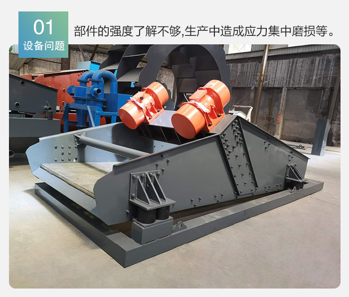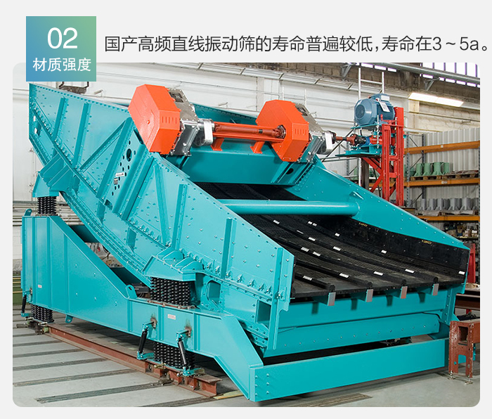 (3)對高頻直線振動篩技術參數(shù)之間的關系了解不夠。由于對高頻直線振動篩各個工藝參數(shù)或振動參數(shù)之間關系的了解不夠,在設計或選型上容易出現(xiàn)失誤,造成“跑水”和“跑粗”等現(xiàn)象,以致影響正常的生產(chǎn)。 (4)材料的結(jié)構(gòu)強度滿足不了要求。目前,國內(nèi)對材質(zhì)的研究與國外相比還有許多差距,使國產(chǎn)高頻直線振動篩的壽命普遍較低,目前壽命一般在3~5a,而國外的為8a左右,因而造成生產(chǎn)成本增加和資源浪費。